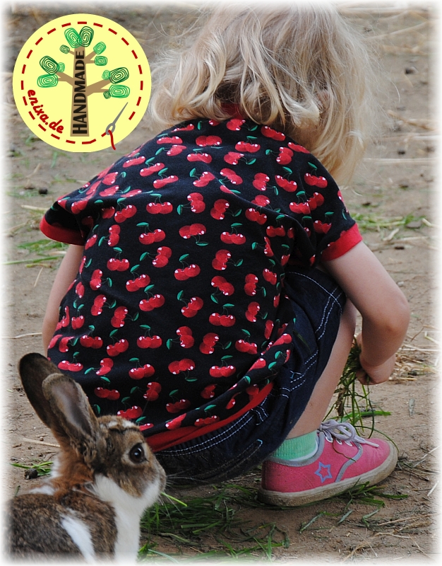 Meine Mama hatte sich aus dem Kirschen-Stoff ein T-Shirt genäht und mir den Rest für die Maus