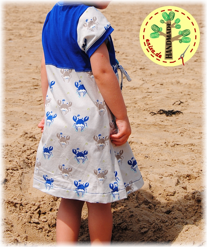 Zu dem Stoff mit den Krebsen habe ich einen blauen Stoff ausgesucht, der auch in dem Muster enthalten ist. Die Nähte